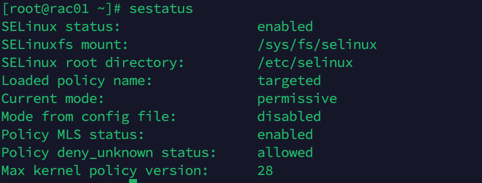 至此,Linux 操作系统的配置就完成了,重启两台主机确保配置没有!重启成功后检查一下 Selinux,透明大页和 numa:
