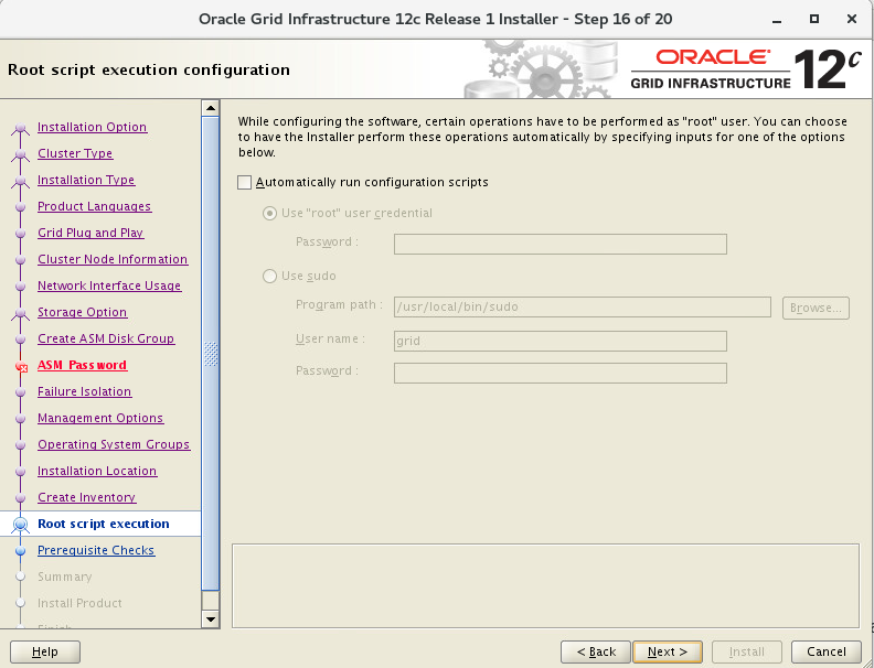 这里不选择自动执行 root.sh 脚本,因此容易失败,所以选择手动执行: