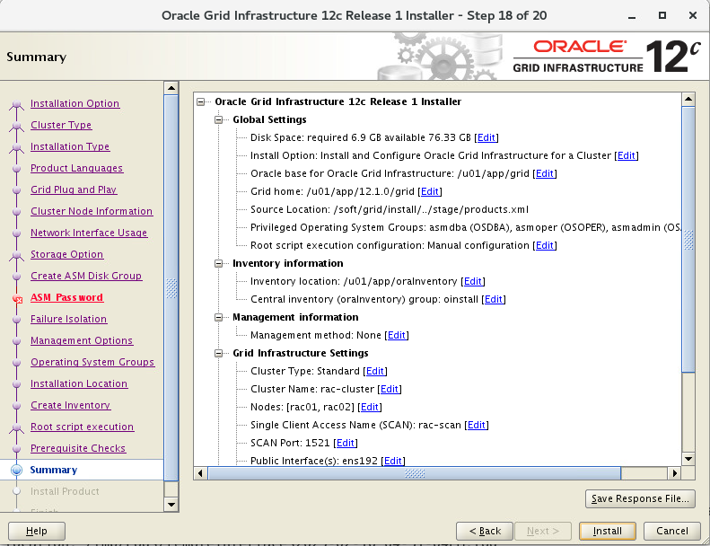 最近,有一套 12CR1 RAC 需要安装,正好记录一下安装过程。