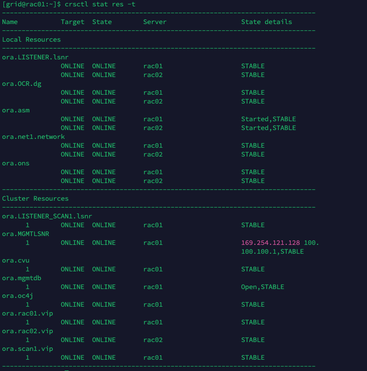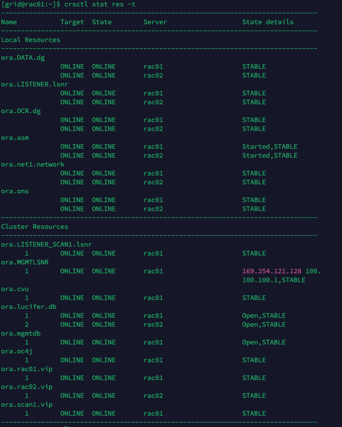 注意: ora.lucifer.db中的 lucifer 是指 db 名称;需要在 root 用户下执行!