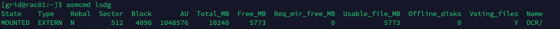 - 裁决盘 OCR:OCR + VOTING=10G、冗余模式:EXTERNAL