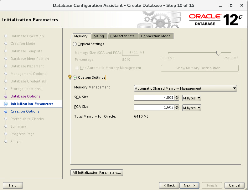 配置内存,使用 ASMM 模式,数据库总内存占用物理内存 70%-90% 之间: