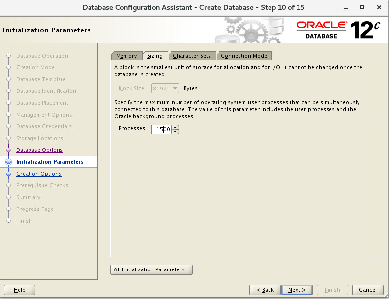 一般用途模式安装,block_size 是无法修改的,process 进程数修改为1500,根据实际情况修改: