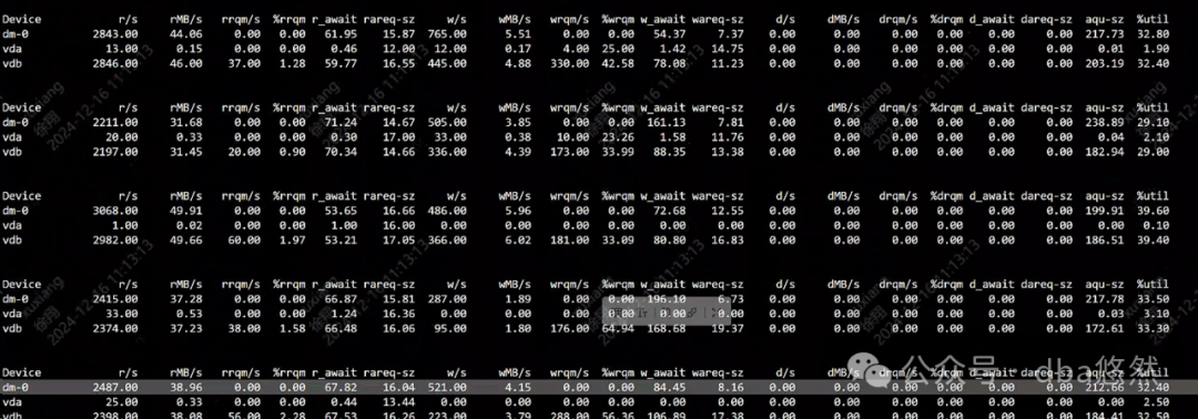 3)iostat显示读写iops不到4000,吞吐量不到50MB/s,io使用率正常: