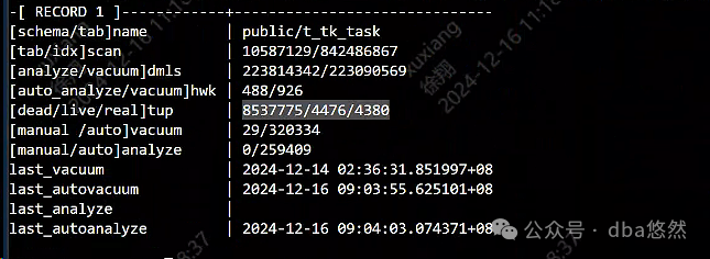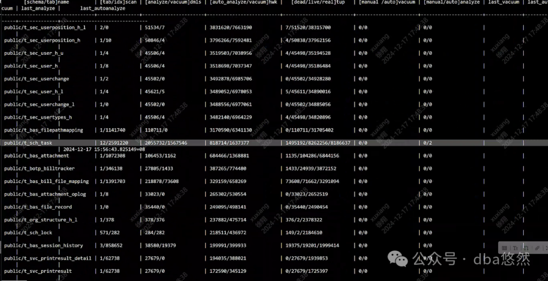 5)部分库表存在普遍性autovacuum/autoanalyze缺失问题: