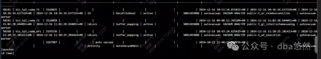 7)Autovacuum进程(3个)一直处于满负荷运行状态: