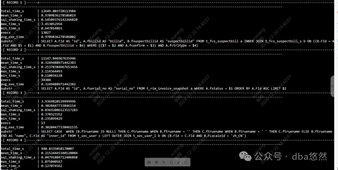1)数据库慢SQL在可控范围,TOP SQL执行平均1s内: