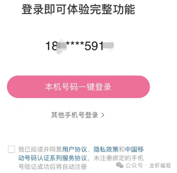 当用户打开APP需要登录的时候,APP会取运营商那里查询用户的手机号码掩码,运营商验证通过之后将当前的手机号掩码返回给APP并在认证的运营商的认证SDK上缓存手机号的掩码,最后就是展示给用户手机号的掩码,如下图所示的展示的手机号掩码: