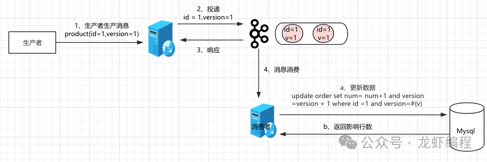 在消息生产的时候携带消息的id、消息的版本号,然后在消费端根据乐观锁原理来执行,即就是根据id和version做更新操作,通过判断影响行是否大于0来判断执行是否成功;如果影响行数大于0表示当前的消息执行完成,反之就执行失败,执行失败不做抛异常。