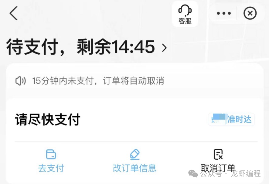 电商企业中订单下单后在规定的时间中(常见的是15分钟)用户没有支付就会执行订单关闭操作。下图是订单下单后等待用户支付的图
