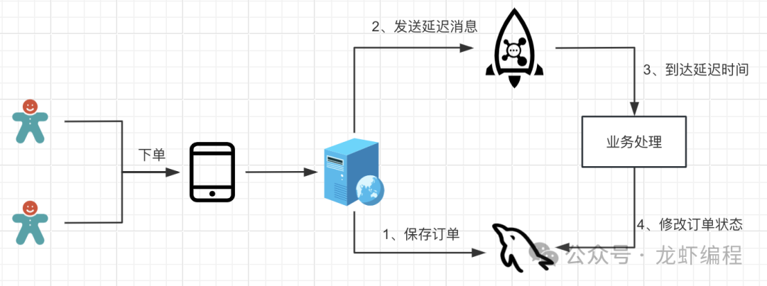 RocketMQ自带了一个很重要的延迟消息的功能,我们可以利用这个特性来帮助我们做实现超时关闭。用户下单之后先保存将订单信息保存到数据库,然后发送一个延时的消息到RocketMQ中,RocketMQ会自动在指定的时间内触发业务处理。