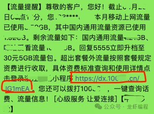 上图是我们经常可以收到的一条流量通知的短信,短信有一个链接A: