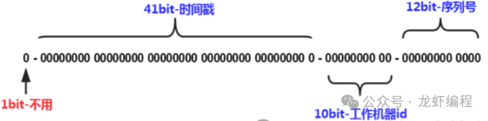 雪花算法生成一个64位的大小的整数,结构如下: