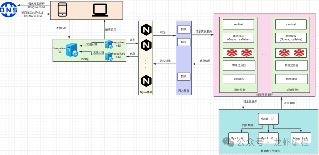(1)LVS使用keepalived来保证高可用,LVS是工作在第四层并且其负载能力强,它负责将请求分发到nginx上;