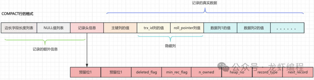行记录中存在一个记录头信息,这里我们以COMPACT行格式为例画出其记录头信息的图:
