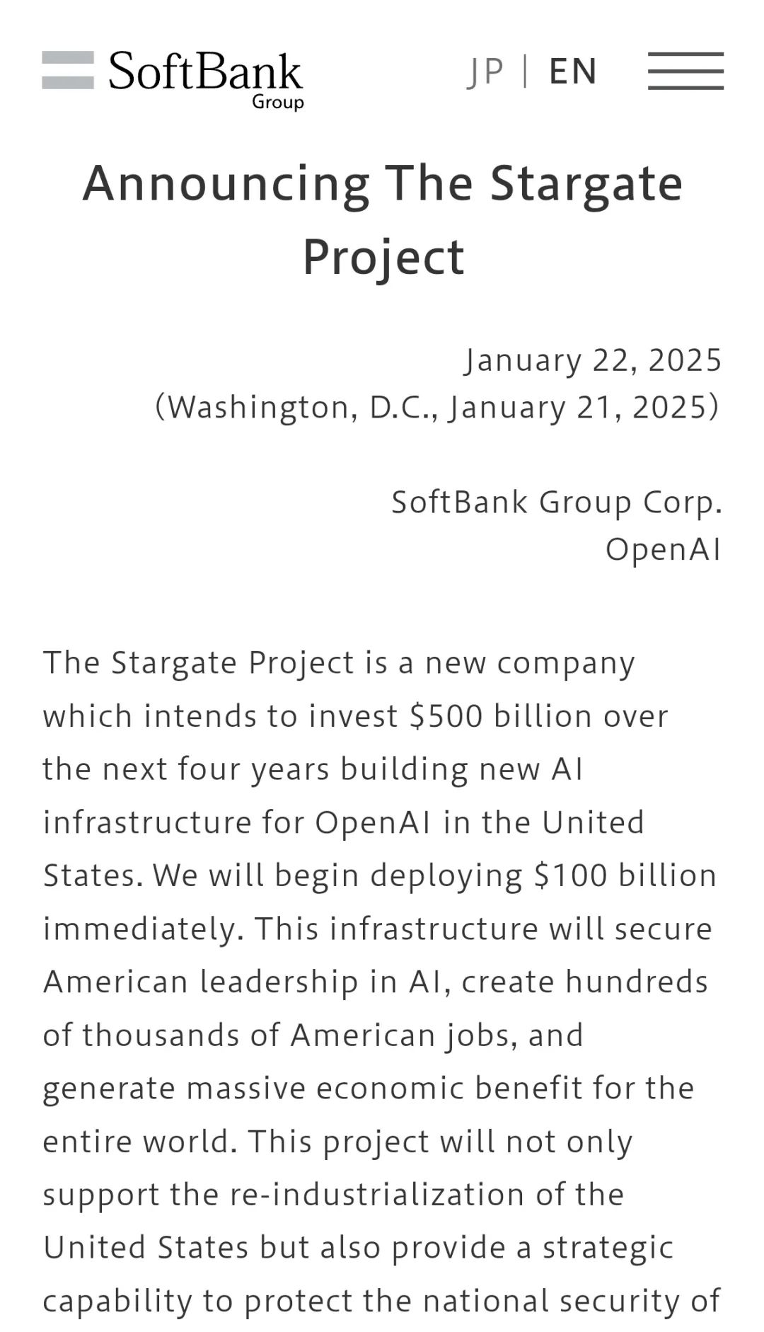 为此,OpenAI和软银官网都做了该消息的宣布。