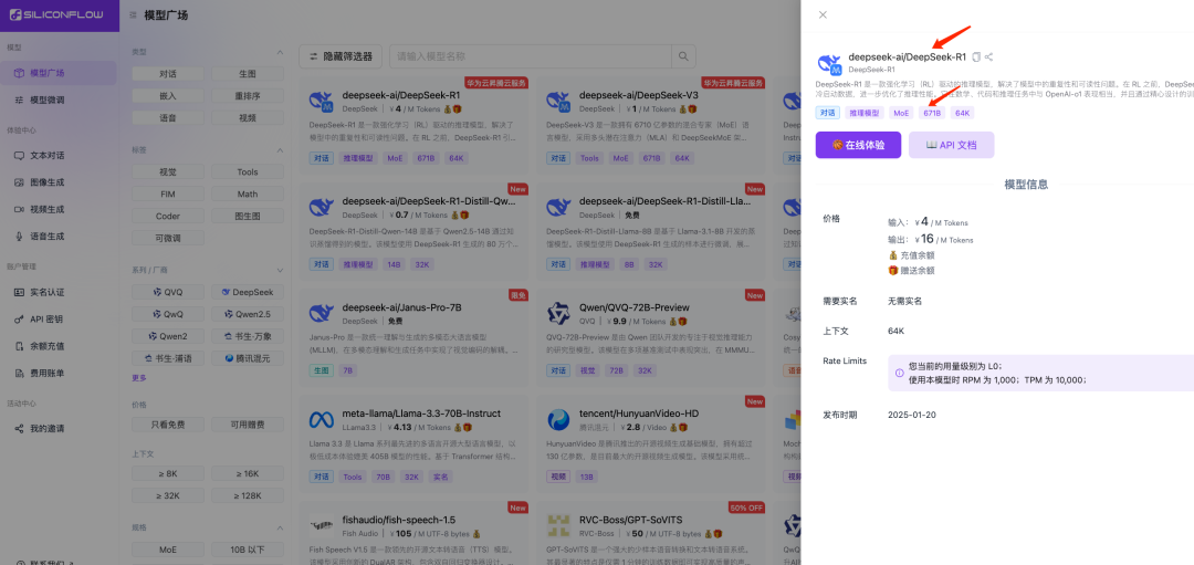 所以,在这里,我们推荐使用硅基流动以及一些云服务企业的API服务,通过API调用的方式,我们可以用很低的成本获得满血版Deepseek的算力支持。而且,最近一段时间,新注册用户还有免费的额度尝鲜。