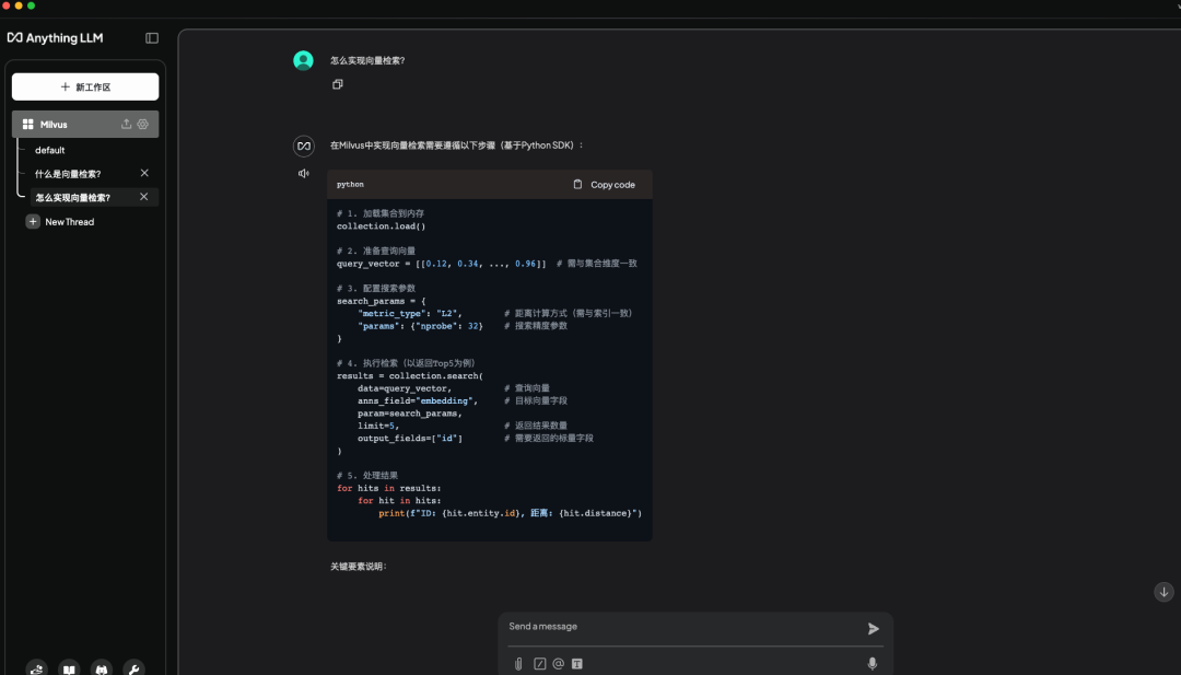 这个组合最大的亮点在于它的灵活性。可以轻松切换不同的大语言模型,Milvus支持亿级数据的高性能检索,AnythingLLM的插件机制让功能扩展变得简单。