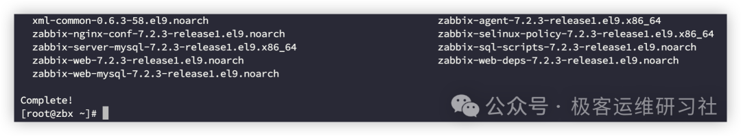 dnf install -y zabbix-server-mysql zabbix-web-mysql zabbix-nginx-conf zabbix-sql-scripts zabbix-selinux-policy zabbix-agent