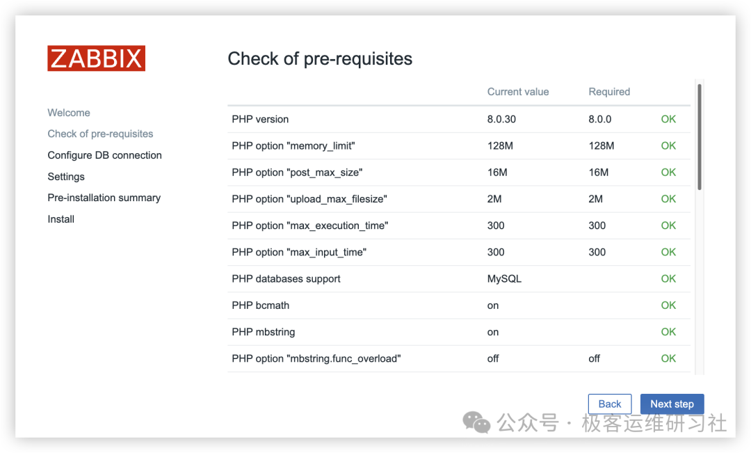 通过IP+端口进行访问Zabbix配置页面,点击 Next Step
