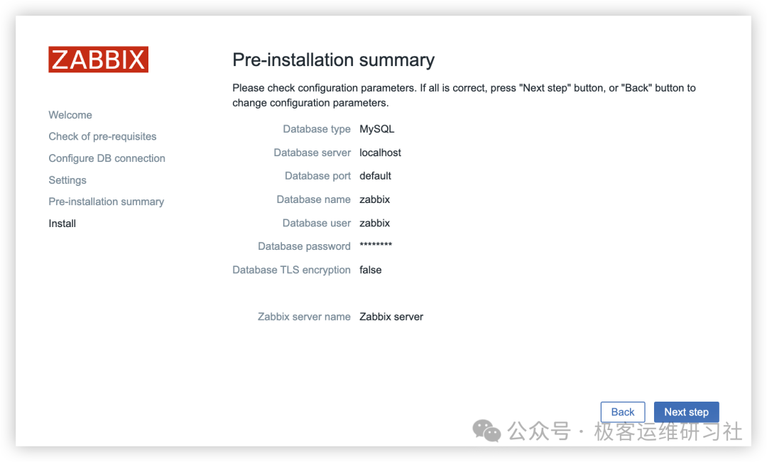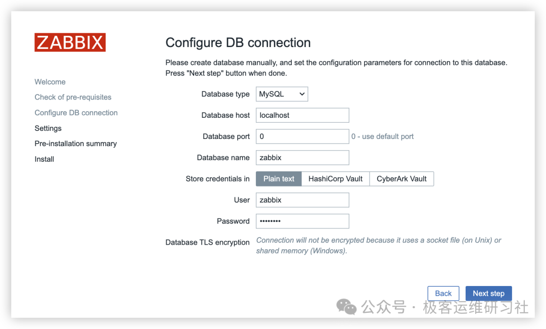 如果你也是按照上述文章内容进行配置的话,此处不需要修改,密码填写password 即可。点击 Next step