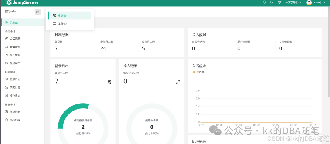 登录到审计员账号可以看到,只有审计,和工作台,没有控制台。