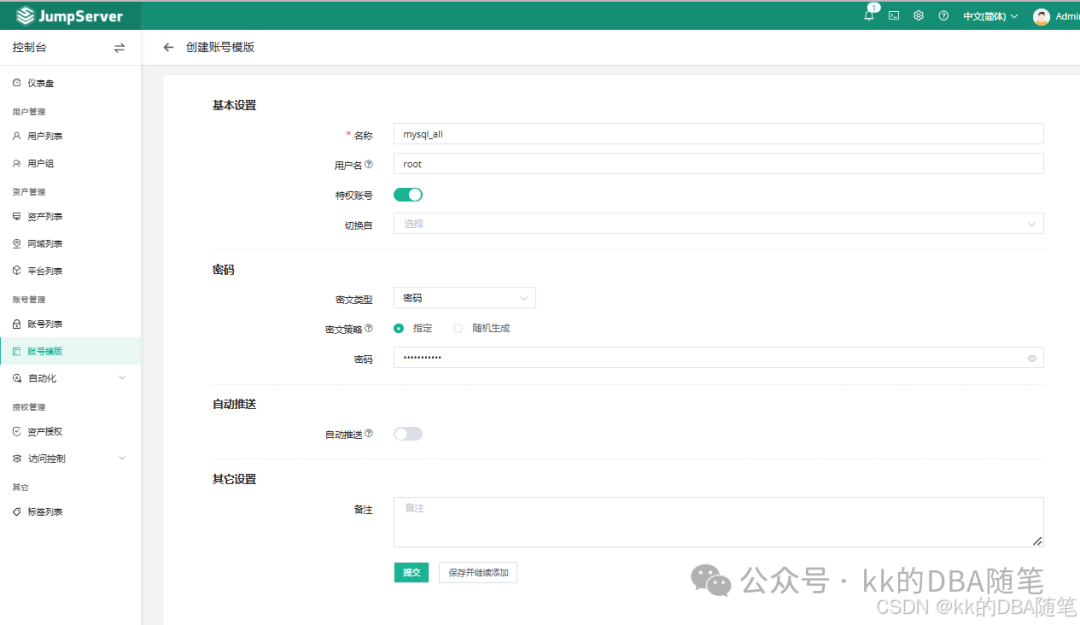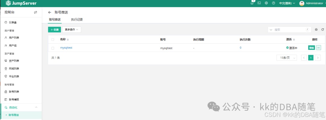 添加资产, 推送账号,可以看到 账号已经通过 ansible 在目标机器上创建