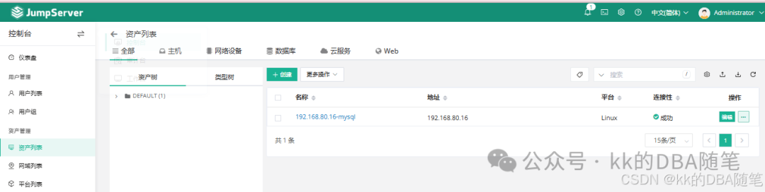 登录运维人员主机; 可以看到 运维人员已经能看到自己的资产,但开发人员和测试人员看不到