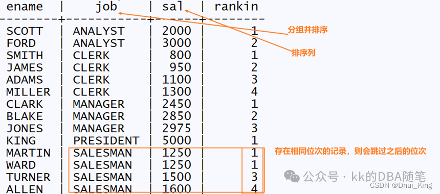 同样是计算排序,即使存在相同位次的记录,也不会跳过之后的位次。