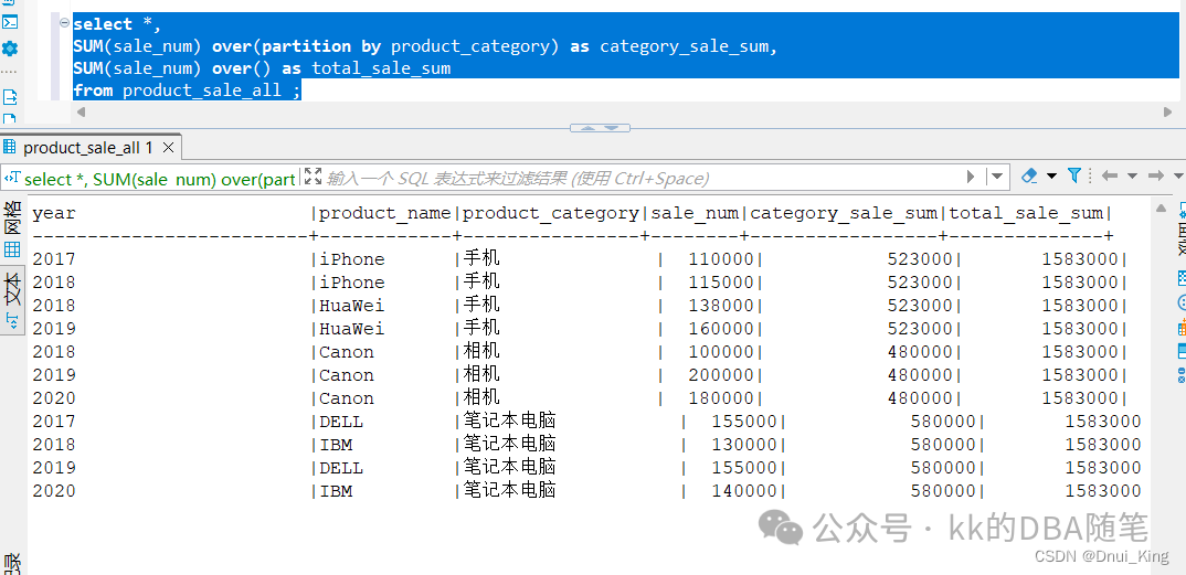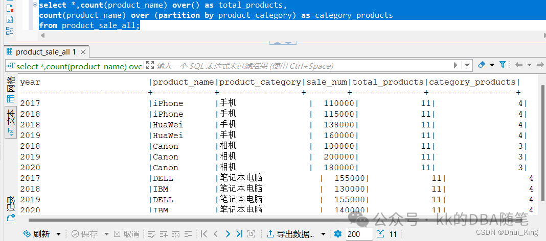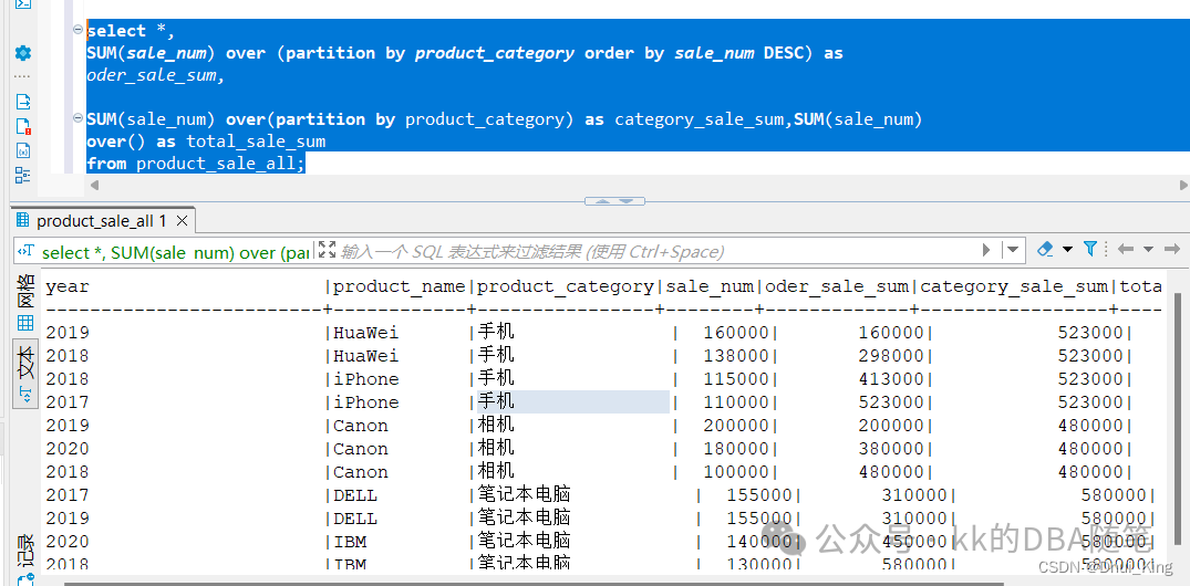 窗口函数也叫分析函数,也叫OLAP函数,通过 partition by 分组,这里的窗口表示范围,,可以不指定 PARATITION BY, 会将这个表当成一个大窗口。
