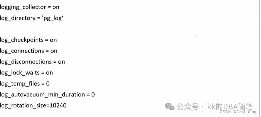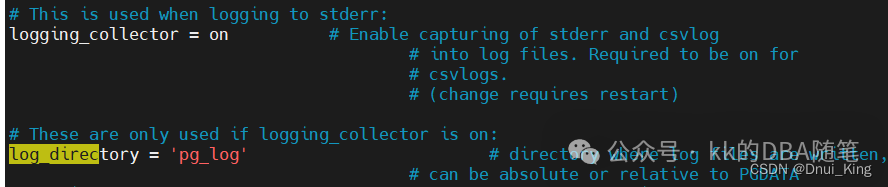 -- 目的只要是为了让 pg 主动收集日志,PG 中的日志分为三种,log,clog,xlog,运行日志 log 默认不打开。