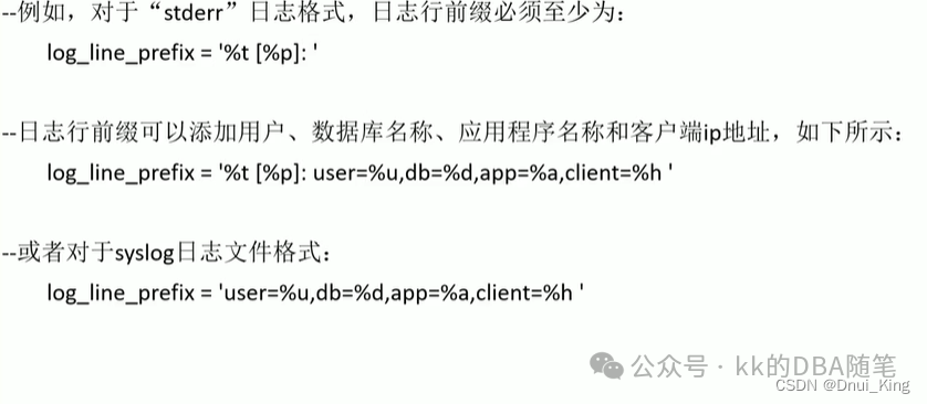 pgbadger 支持在 postgresql. conf 文件中通过 log_ line_ prefix 自定义的任何格式, 只要它至少指定 %t 和 %p 模式。