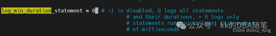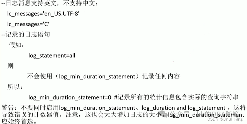 如果要保存系统性能, 也可以使用 log_ duration 替代 ogmin duration_statement 来仅报告持续时间和查询数。