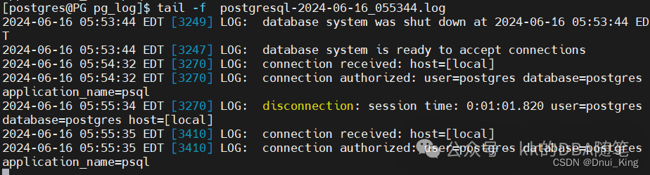 两种方式各有优缺点,我选用第二种方法,日志记录在我们自己定义的目录 pg_log 下。