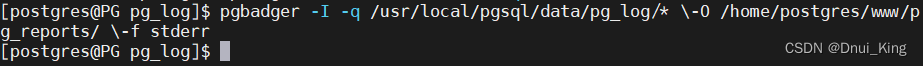 pgbader -I -q /usr/local/pgsql/data/pg_log/* \-O home/postgres/www/pg_reports/ \-f stderr