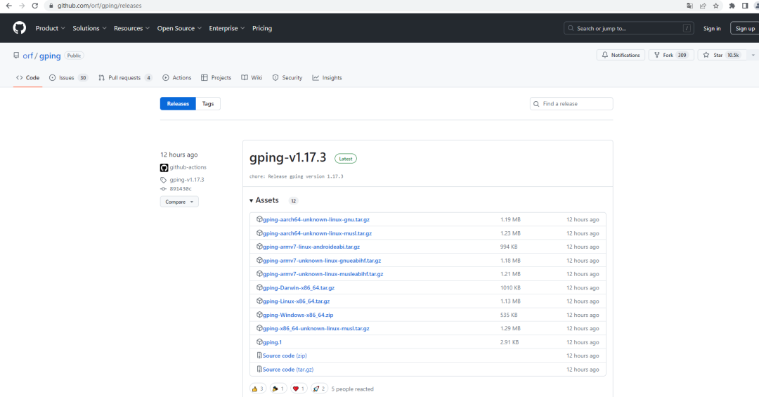对应github地址:https://github.com/orf/gping/releases