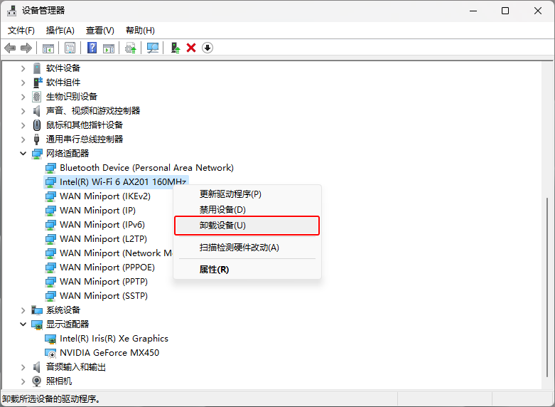 无感叹号操作步骤:如果驱动没有提示感叹号,我们只要右击网卡驱动,选择卸载设备并勾选“尝试删除此设备的驱动程序”后,点击卸载。之后重启计算机即可。