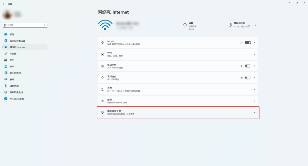 第二种更为简单,只需右击WiFi图标选择“网络和Internet设置”。选择“高级网络设置”点击“网络重置”。