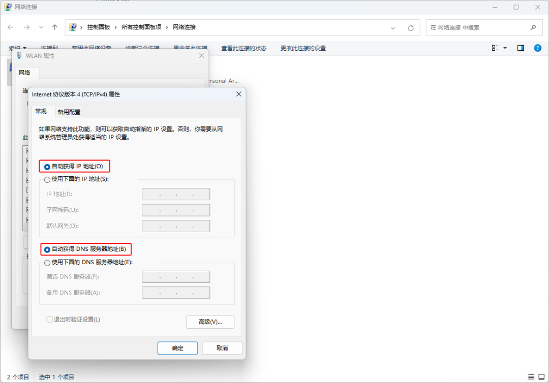 选择“自动获得DNS服务器地址”