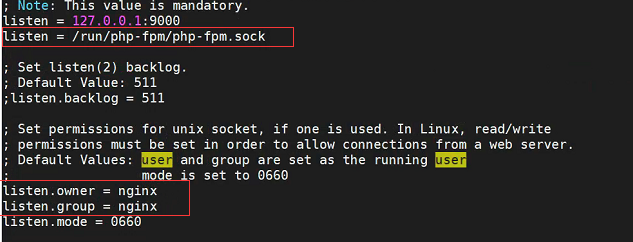 [root@localhost /]# vim /etc/php.ini修改时区配置如下[Date]; Defines the default timezone used by the date functions; http://php.net/date.timezone第922行 date.timezone =Asia/Shanghai[root@localhost /]# vim /etc/php-fpm.d/www.conf修改成如下行user = apache 换成 nginxgroup = apache;listen = 127.0.0.1:9000下面添加listen = run/php-fpm/php-fpm.socklisten.owner = nginxlisten.group = nginxlisten.mode = 0660[root@localhost /]# systemctl enable php-fpm[root@localhost /]# systemctl restart php-fpm