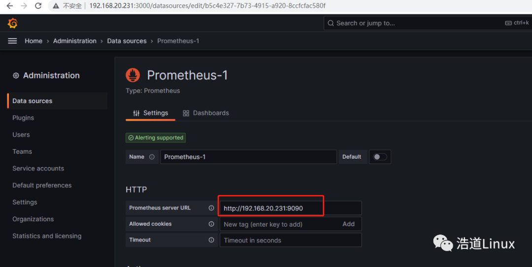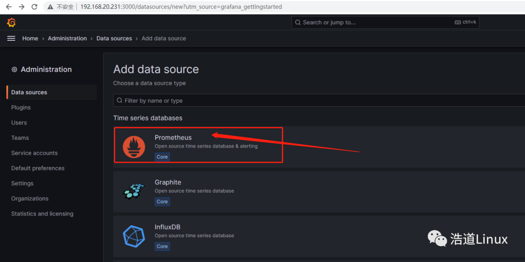4)通过以下地址访问garfana,并且配置相应的数据源