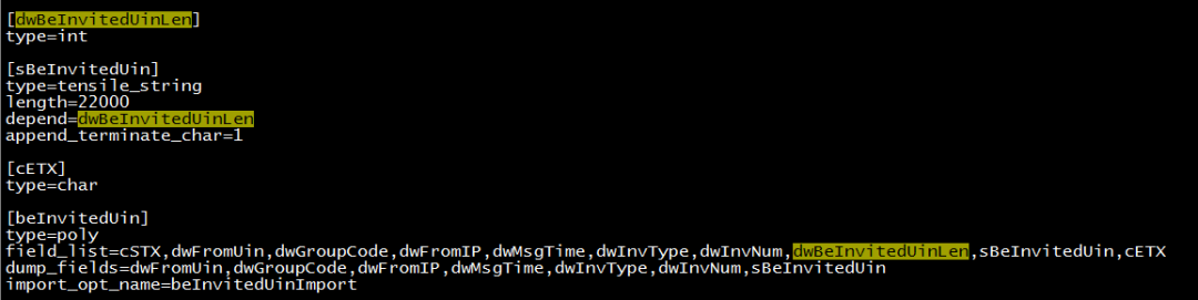 将光标移到需要高亮显示的单词上,在命令模式下输入gd,那么就可以将当前的单词在当前文本中全部高亮显示,如下图所示,高亮显示dwBeInvitedUinLen。