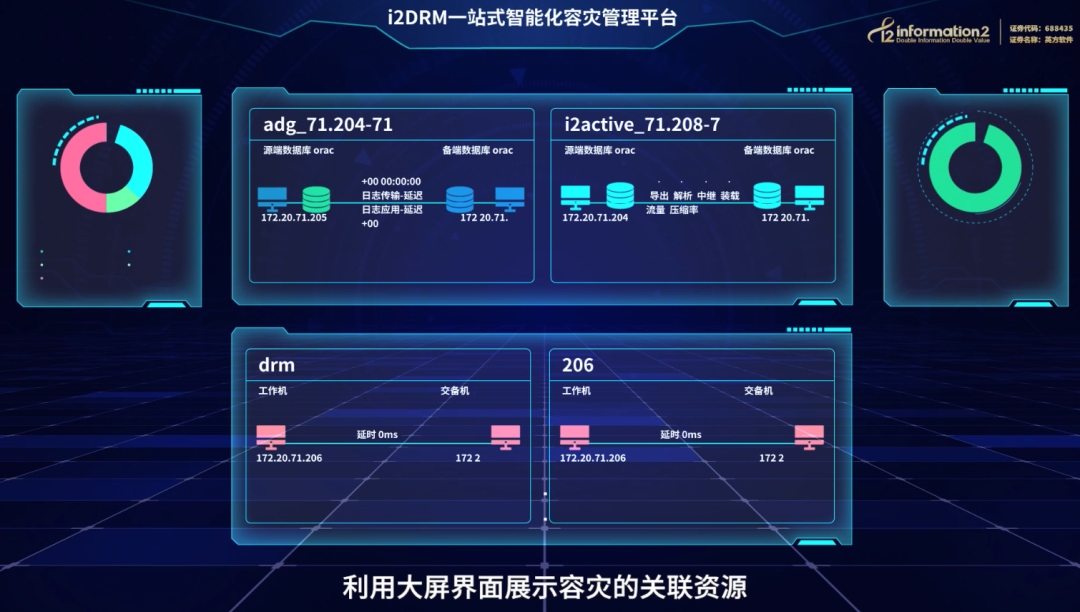 英方容灾管理平台通过全流程化的指挥管理、资源管理、预案管理及平台管理,结合平台可视化的容灾流程编排和决策级的大屏界面展示,对整个应急切换、容灾演练进行全程实时监控,科学把握和推进容灾切换进度,让管理员可准确、快速地指挥决策。