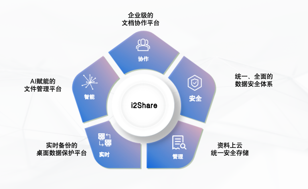 英方i2Share文件共享与管理平台,基于英方文件级数据捕获技术及持续数据保护机制,在文件共享与管理,重塑协作体验的基础上,提供桌面文件实时备份和CDP(持续数据保护)功能,支持一键恢复和批量恢复。企业可以方便地保护终端用户数据,防止数据丢失和泄露。