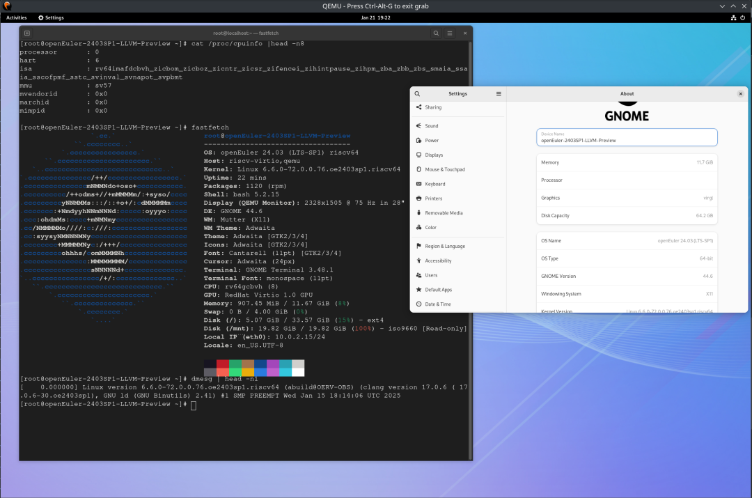 openEuler LLVM 平行宇宙计划近期发布了面向openEuler 24.03 SP1预览版,这一新版本主要有以下特点:首先是版本发布的范围扩展到了 Everything + Epol,使其与 openEuler 的正式版本范围保持一致。其次是升级了 RISC-V 架构的软件基线,扩大至接近 RVA22 范围并在此基础上使能了向量扩展,为后续版本的演进奠定了基础。同时,新版本中还使能了 mold 链接器用于大部分软件包的编译,实现了系统构建过程的加速。