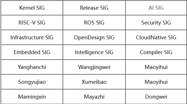openEuler 社区的每一步发展、每一次焕新,都离不开大家的积极贡献与热忱支持。小编限于视野和能力,难免有所遗漏,在此表示歉意。同时,衷心感谢社区朋友、开发者们以及openEuler SIG组成员的贡献: