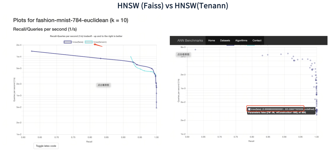 在业内的评测中,通常存在两类榜单:一类是算法榜单,另一类是引擎榜单。而我们这里提到的是算法榜单,称为 ANN Benchmark。