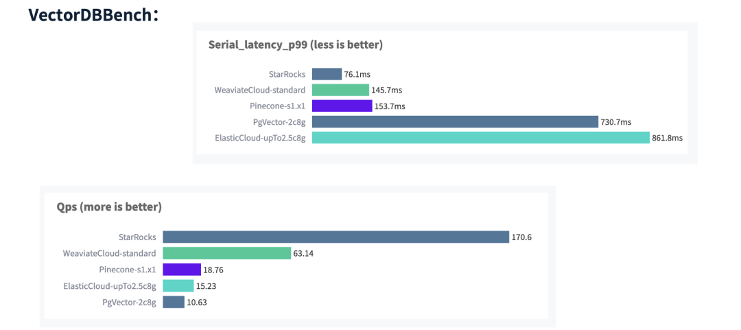 不过,需要指出的是,OLAP 系统并不是很适合高 QPS 场景。如果深入分析榜单,第一名通常是一些专用向量数据库,其 QPS 能达到数万级别。