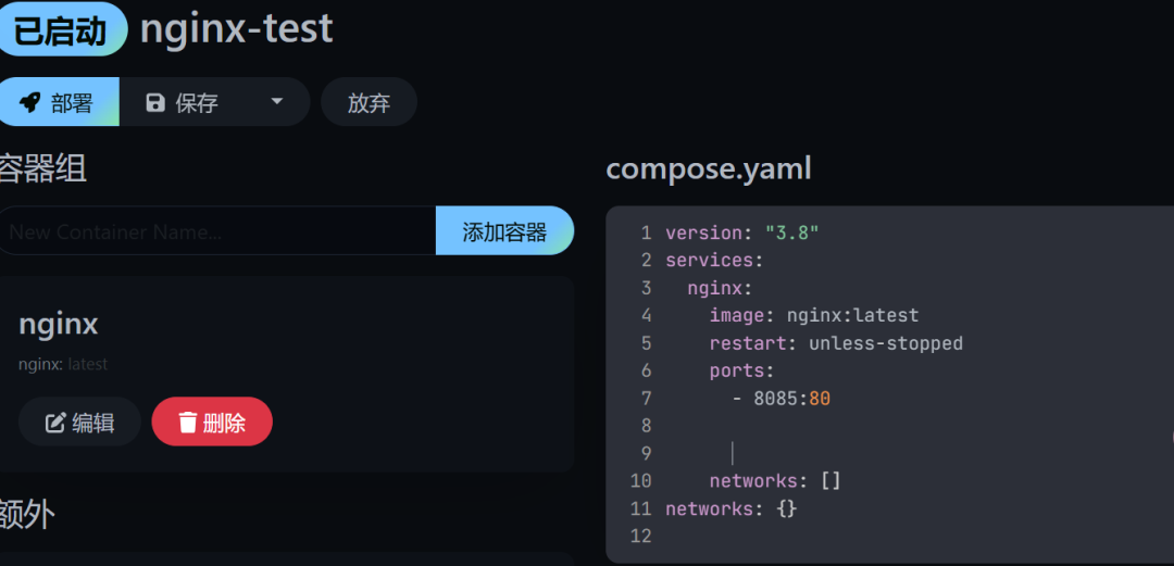 5、我们也可以手动直接编辑右侧的compose.yaml文件。