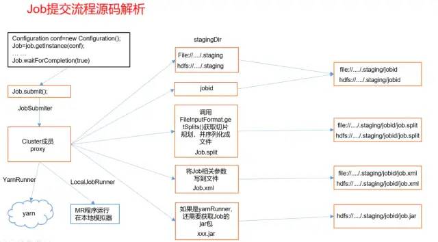 4)提交切片规划文件到YARN上,YARN上的MrAppMaster就可以根据切片规划文件计算开启MapTask个数